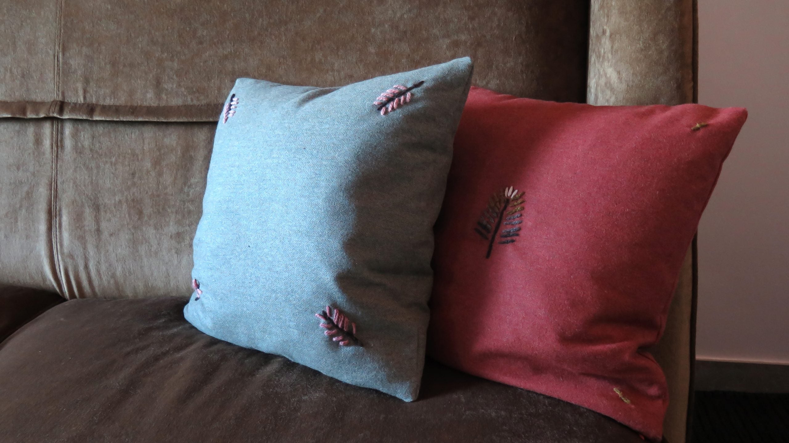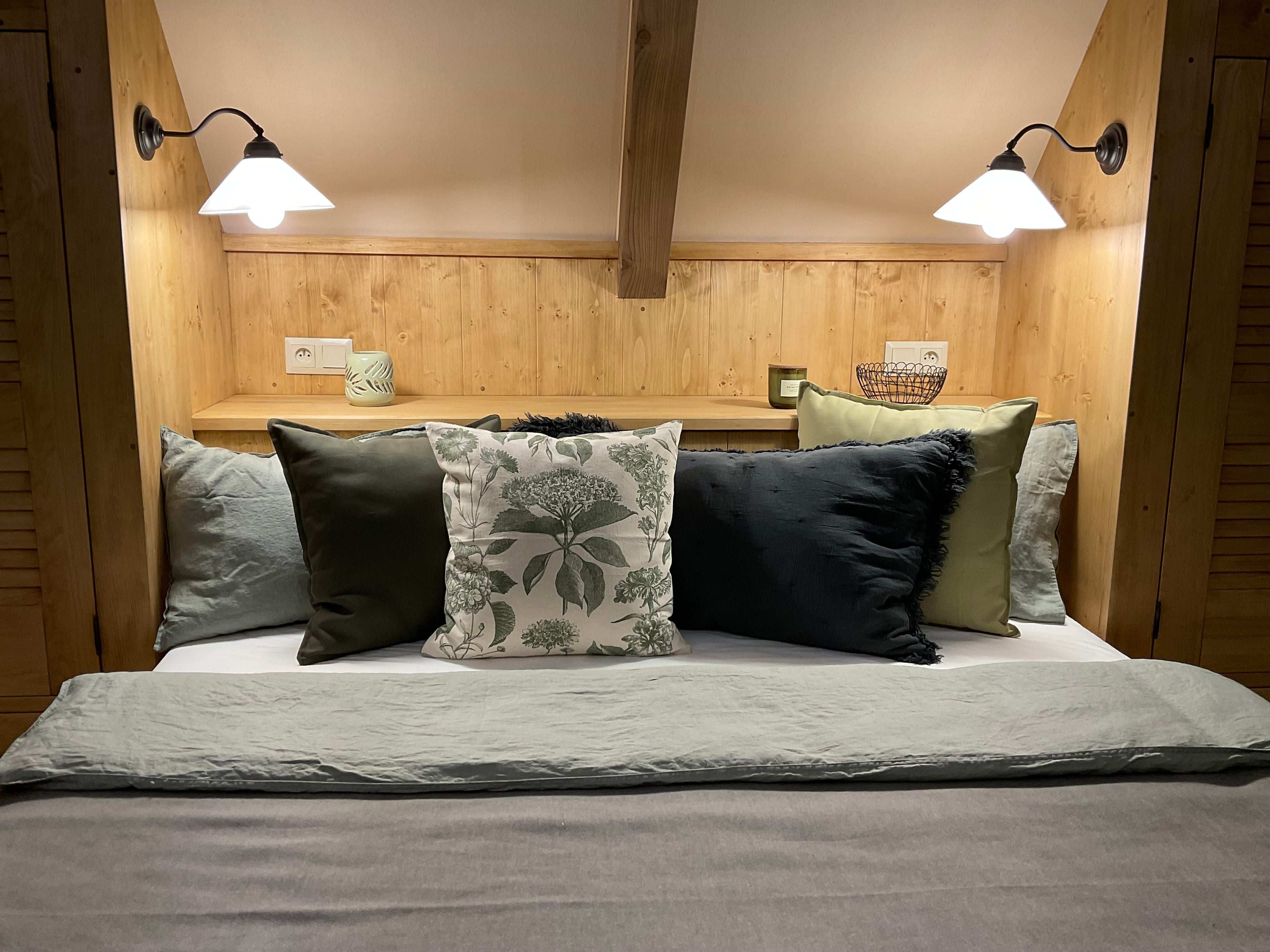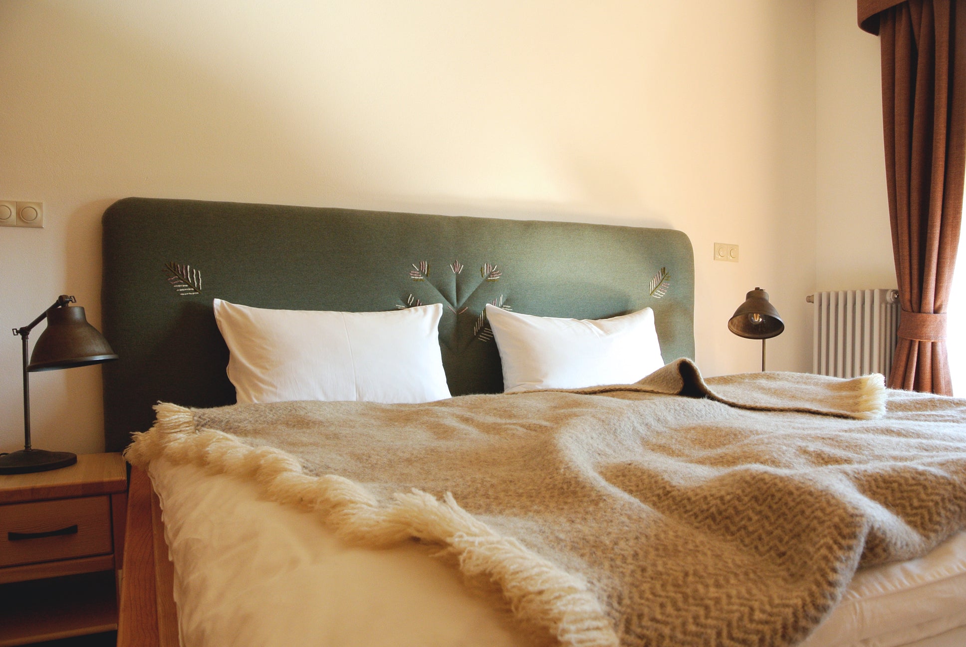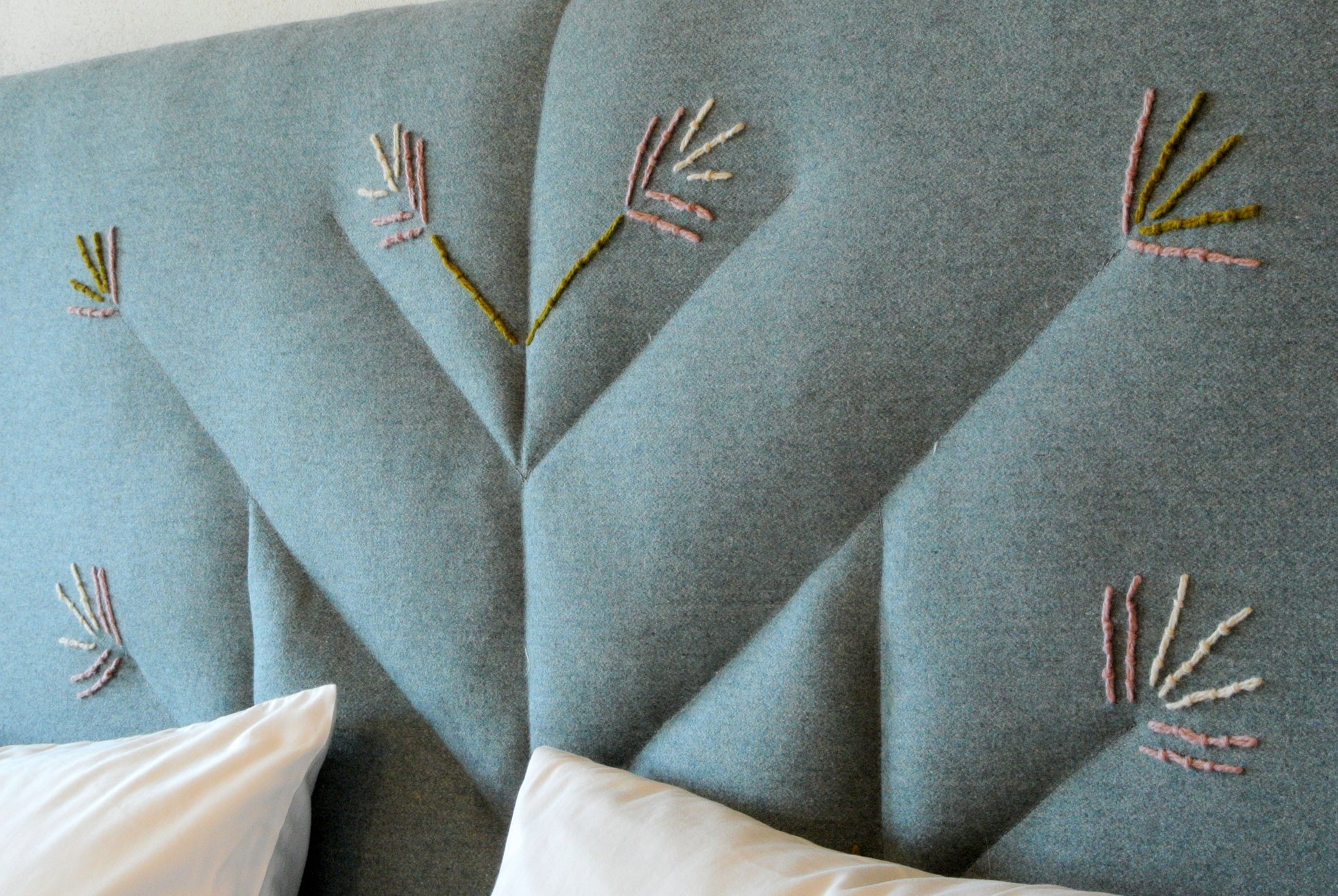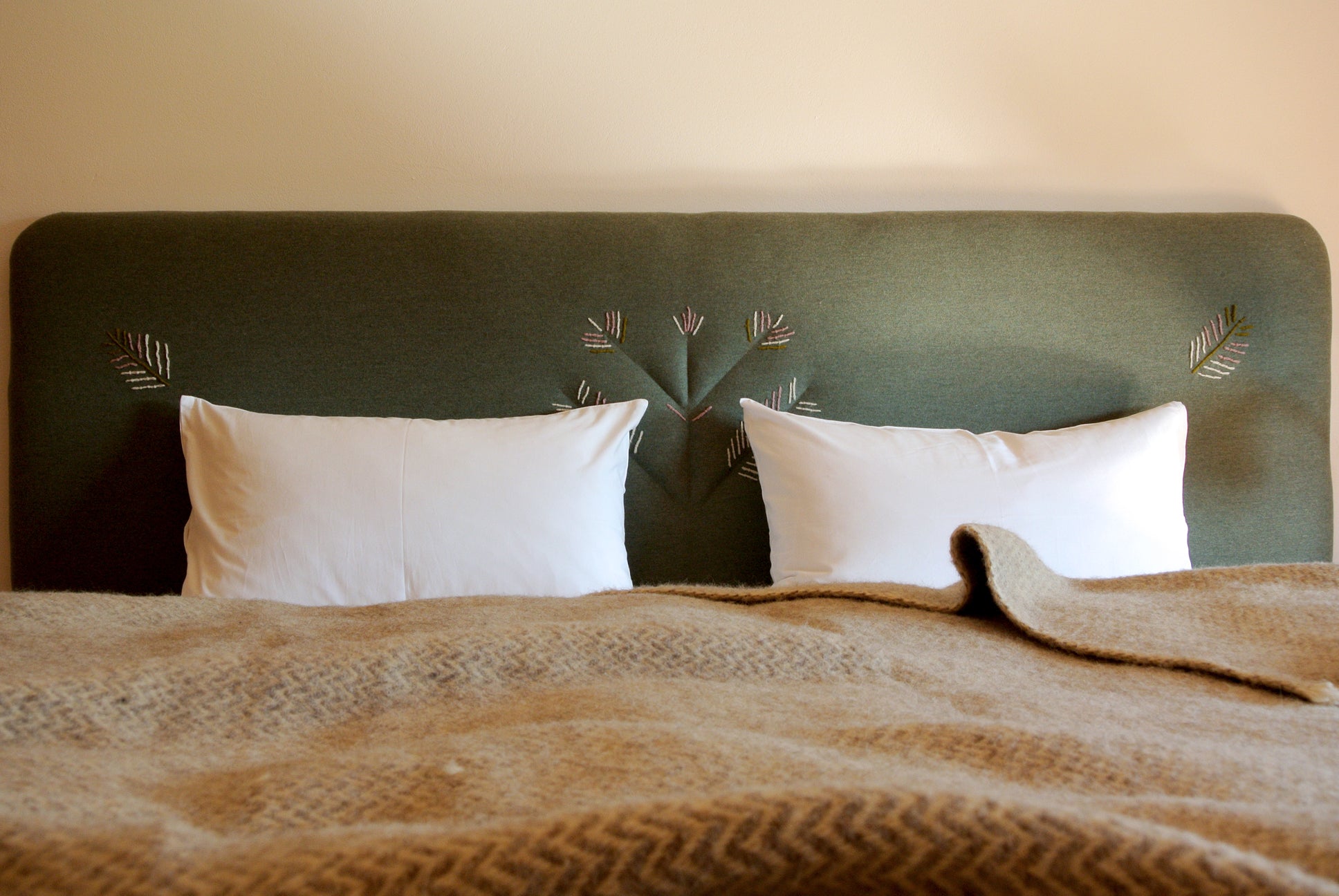 Hand-embroidered upholstered headboards for private apartments located in the heart of Šumava.