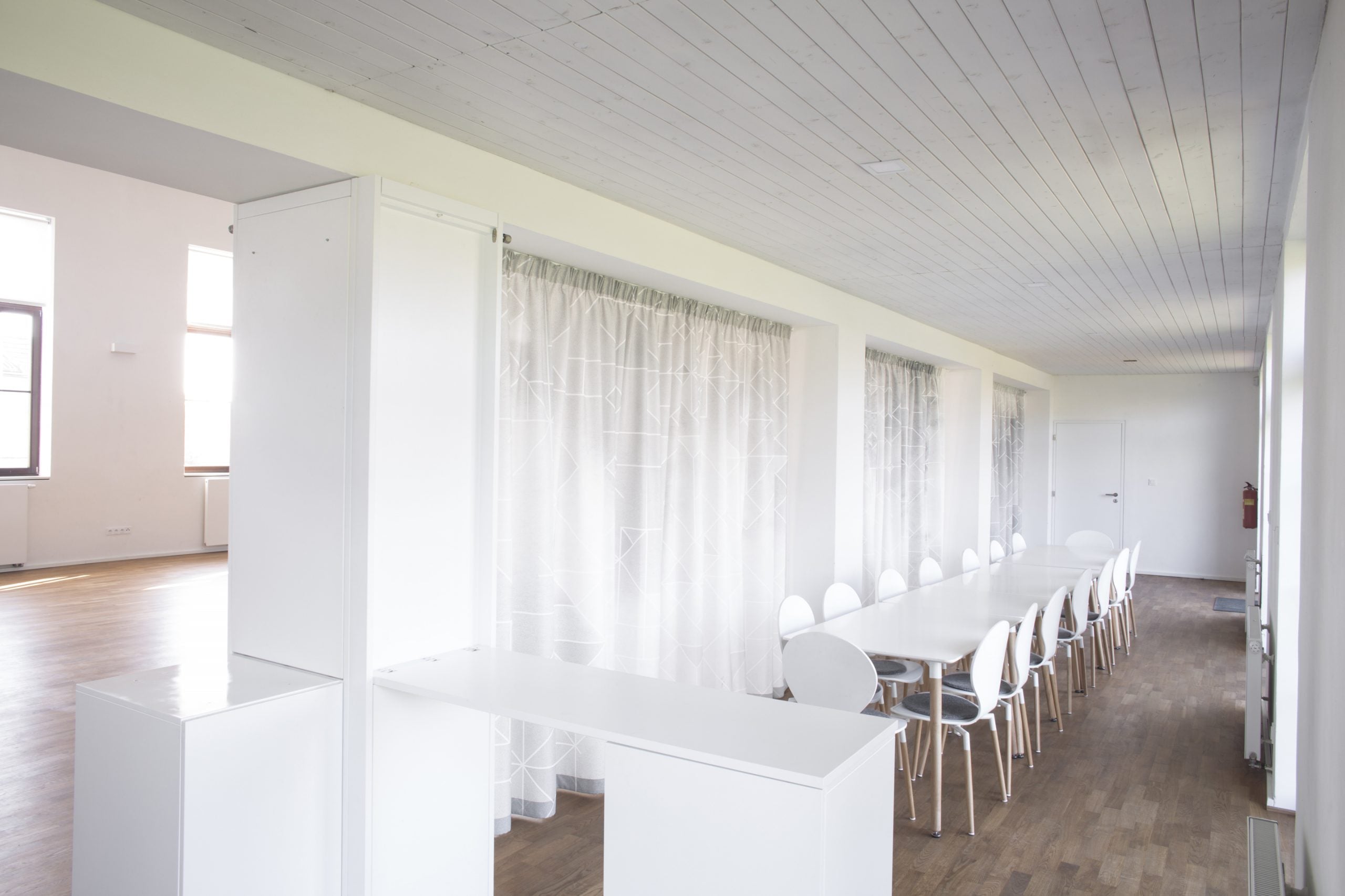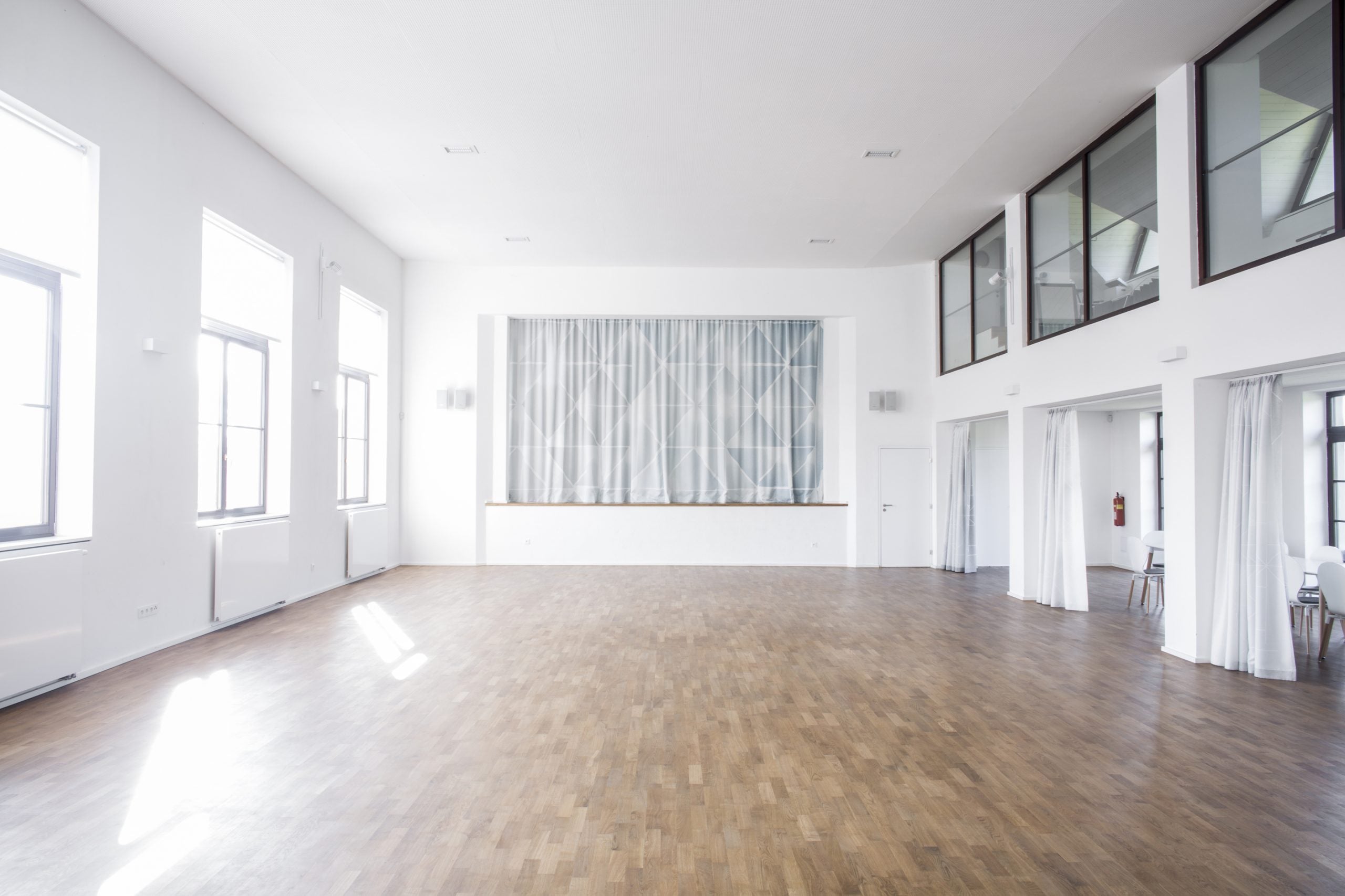 Draperies and a curtain with an original motif tailored for a Sokol Gym currently serving as a multifunctional and cultural center. Cooperation with Martin Kropáč architects.